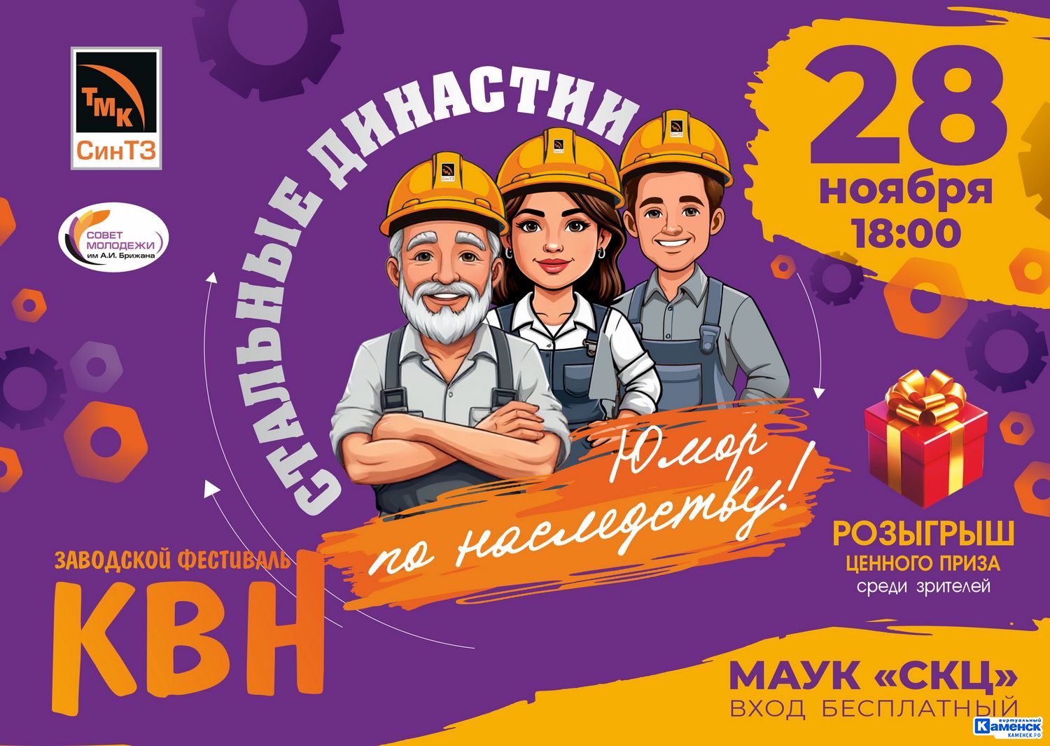 28 ноября синарские трубники приглашают в СКЦ на заводской фестиваль команд КВН. Тема выступлений «Стальные династии. Юмор по наследству».