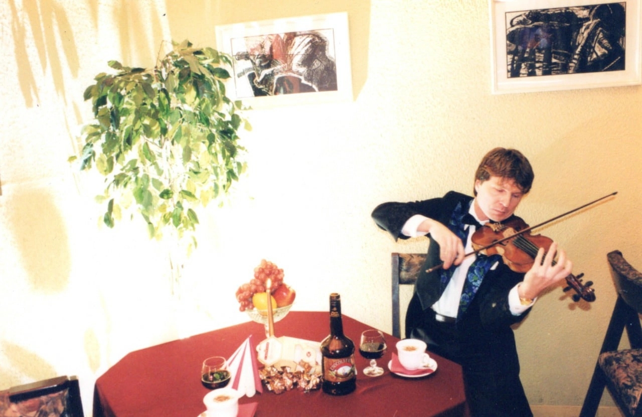 — Первое, самое мощное, впечатление от занятий скрипкой у меня произошло после игры с оркестром, когда мне было тринадцать лет. Это было незабываемо! На областном конкурсе скрипачей тем, кто попадал в фавориты, разрешалось играть одно произведение с симфоническим оркестром. Прекрасное здание, старинный барочный зал, чудесная аккустика — всё это неимоверно впечатляло своей какой-то праздничной приподнятостью и возвышанностью мою юную душу. Дирижёр. Сто музыкантов оркестра… И когда на репетиции, а потом и на концерте всё это зазвучало вокруг меня! Наверное, это воспоминание моего детства одно из самых ярких в моей памяти. Оно до сих пор возбуждает во мне желание творить, дает силы создавать музыку сейчас и, наверняка, останется со мною навсегда.