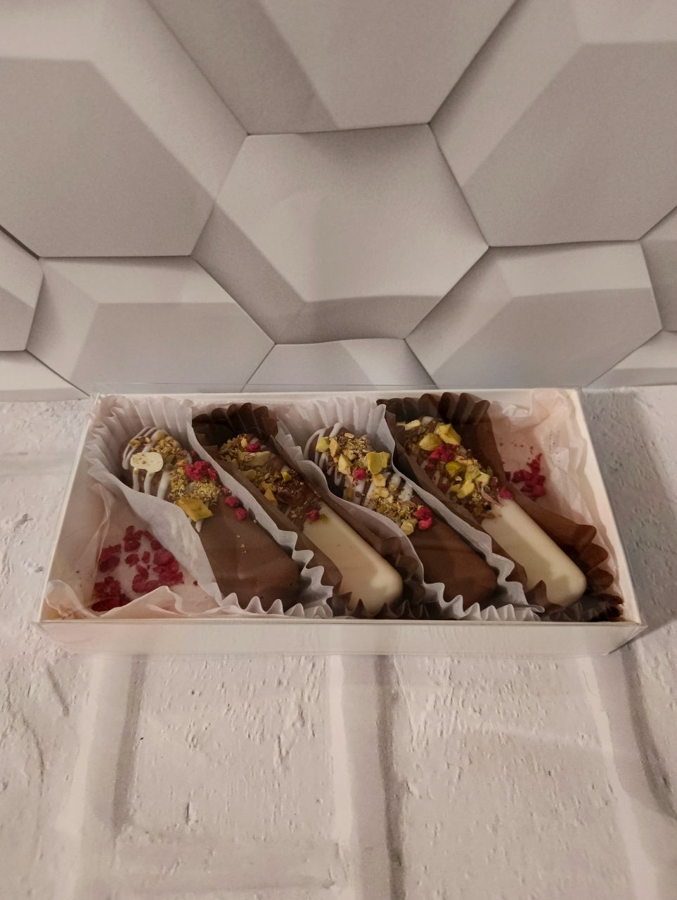— Интерес к ремеслу проснулся практически год спустя, как только все блогеры стали хвастаться модным дубайским шоколадом. Я стала наблюдать, как люди из разных городов и стран стали его готовить. И меня тоже это увлечение не прошло стороной — я также, как и многие, решила попробовать сделать дубайский шоколад. Потом дала этот шоколад попробовать одним людям, затем другим… Отзывов было много! Далее я решила заняться конкретно шоколадом, причём, не имея за плечами специального образования или хотя бы каких-то курсов. Когда многие начали заказывать и благодарить меня за вкусный шоколад (кто-то даже заказывал не один раз), то я решила, что улучшу своё производство и окунулась в подробности. После стала заниматься не только шоколадом, шоколадными наборами и конфетами, но и клубникой в шоколаде.