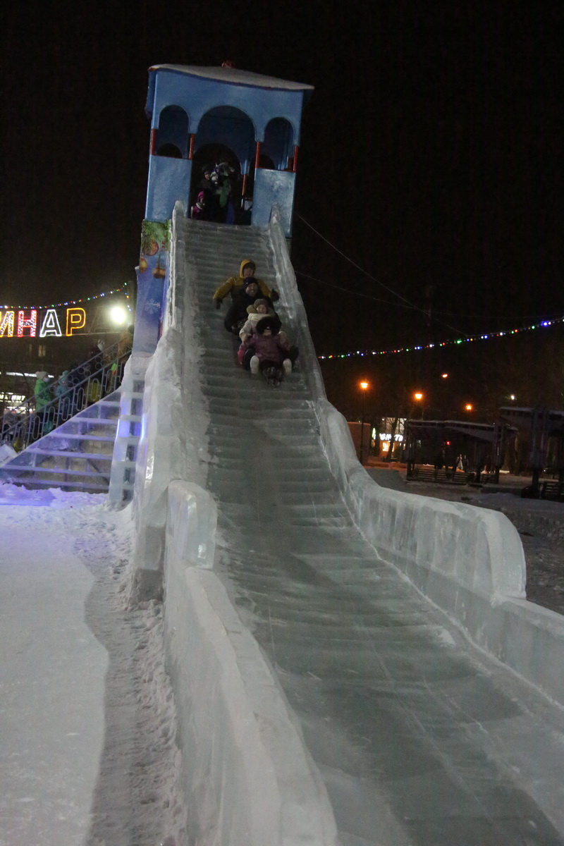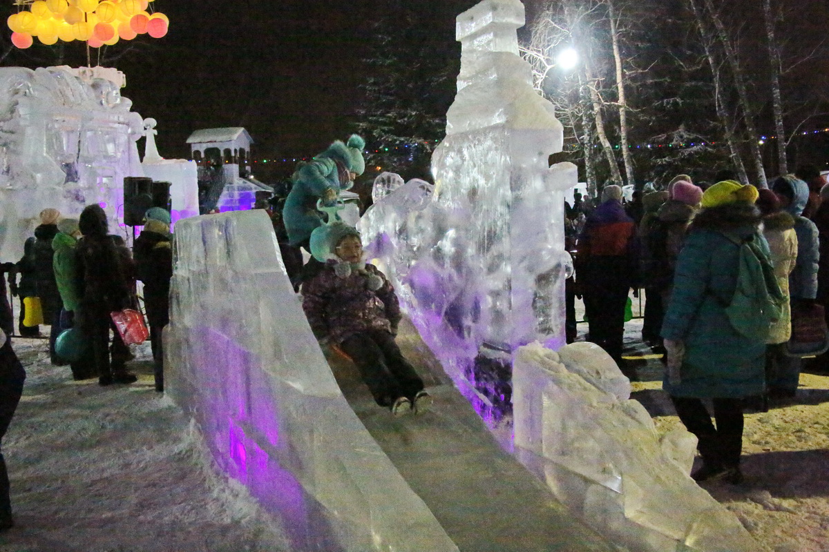 Настоящее ледовое царство создали в парке отдыха трубников. Здесь уже не первый день дети «осваивают» новые сказочные виды транспорта — карету в упряжке с поющим медведем, чуть поодаль можно прокатиться на летучем корабле или попытаться оседлать лихую тройку. Но круче всего прокатиться на самой длинной (скат — сто метров) горке, отмечают дети. Праздничное настроение поддерживается переливом иллюминации и звонкой музыкой. В честь открытий — 400 залпов фейерверка.