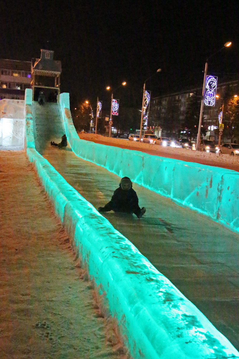Любимые герои мультфильмов вне времени «ожили» во льду на главной новогодней площадке. Умка, Чебурашка, Бременские музыканты, снежная королева, Ёжик и многие другие персонажи советских мультфильмов уже не первый день привлекают внимание горожан. А мальчишки по достоинству оценили качество больших горок изо льда. Говорят, в этом году кататься удобнее.
