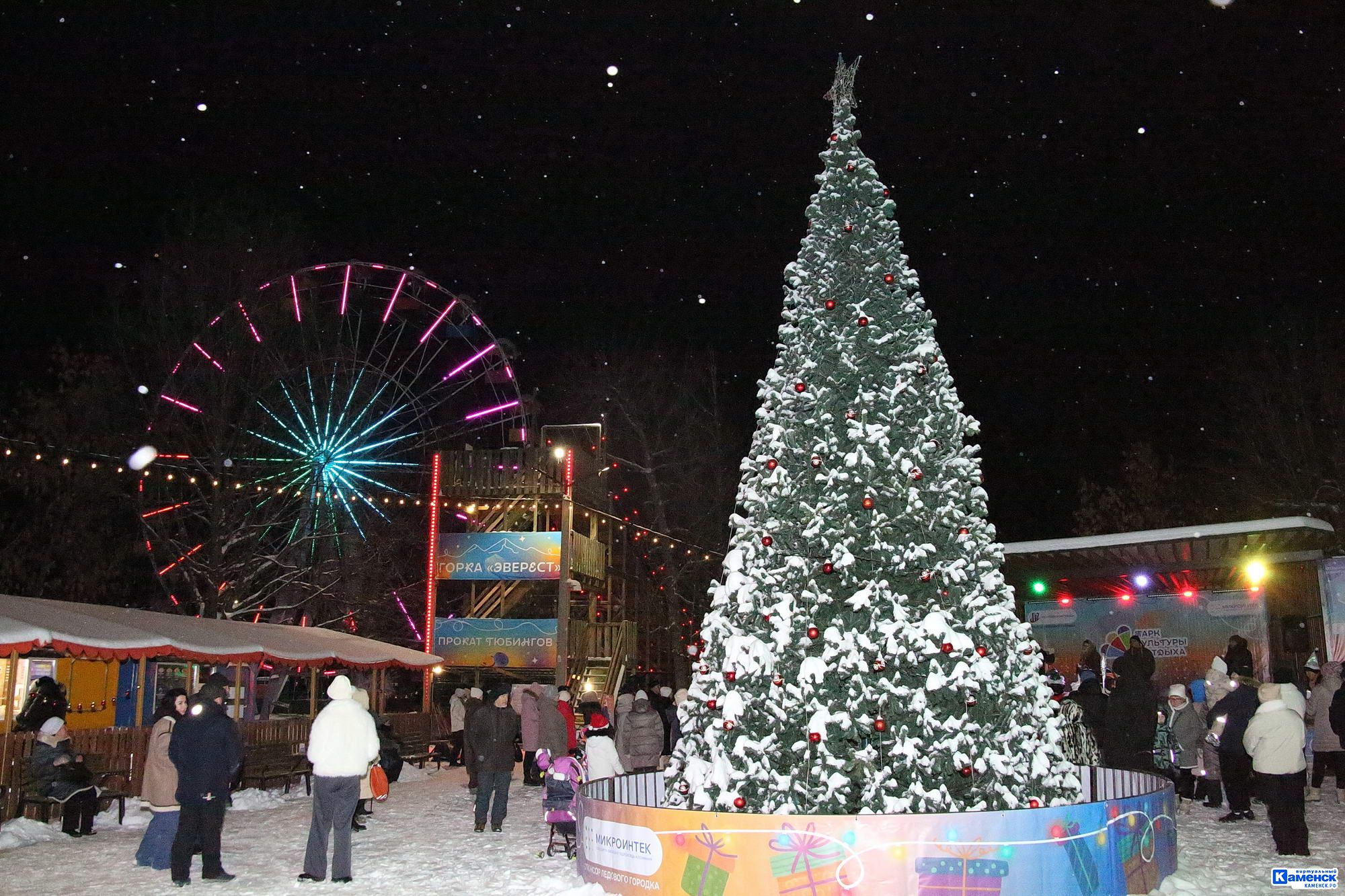 Ледяное царство на площади Ленинского комсомола в новогодние каникулы в этом году, без сомнения, станет точкой притяжения каменцев и гостей города. Входная группа оформлена в виде Каменных ворот. Детвору и их родителей порадуют шесть горок для детей разного возраста, лабиринт с шахматами, ловушка-луноход и аттракционы. Впервые появились две новые фотозоны: хорошие снимки на память можно сделать в санях, запряженных оленем, и рядом с Дедом Морозом и Снегурочкой. Темой для городка стали любимые персонажи советских открыток 60−70-х годов.