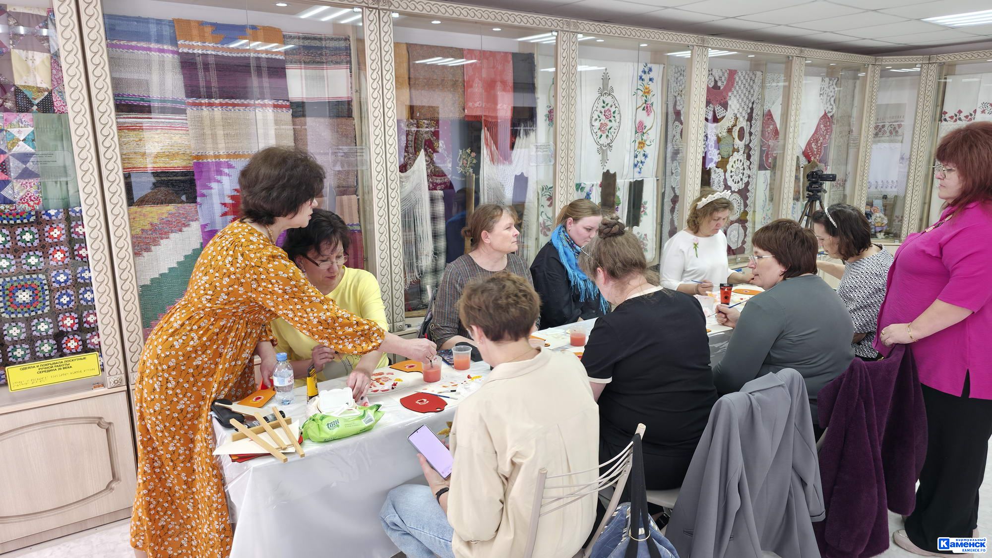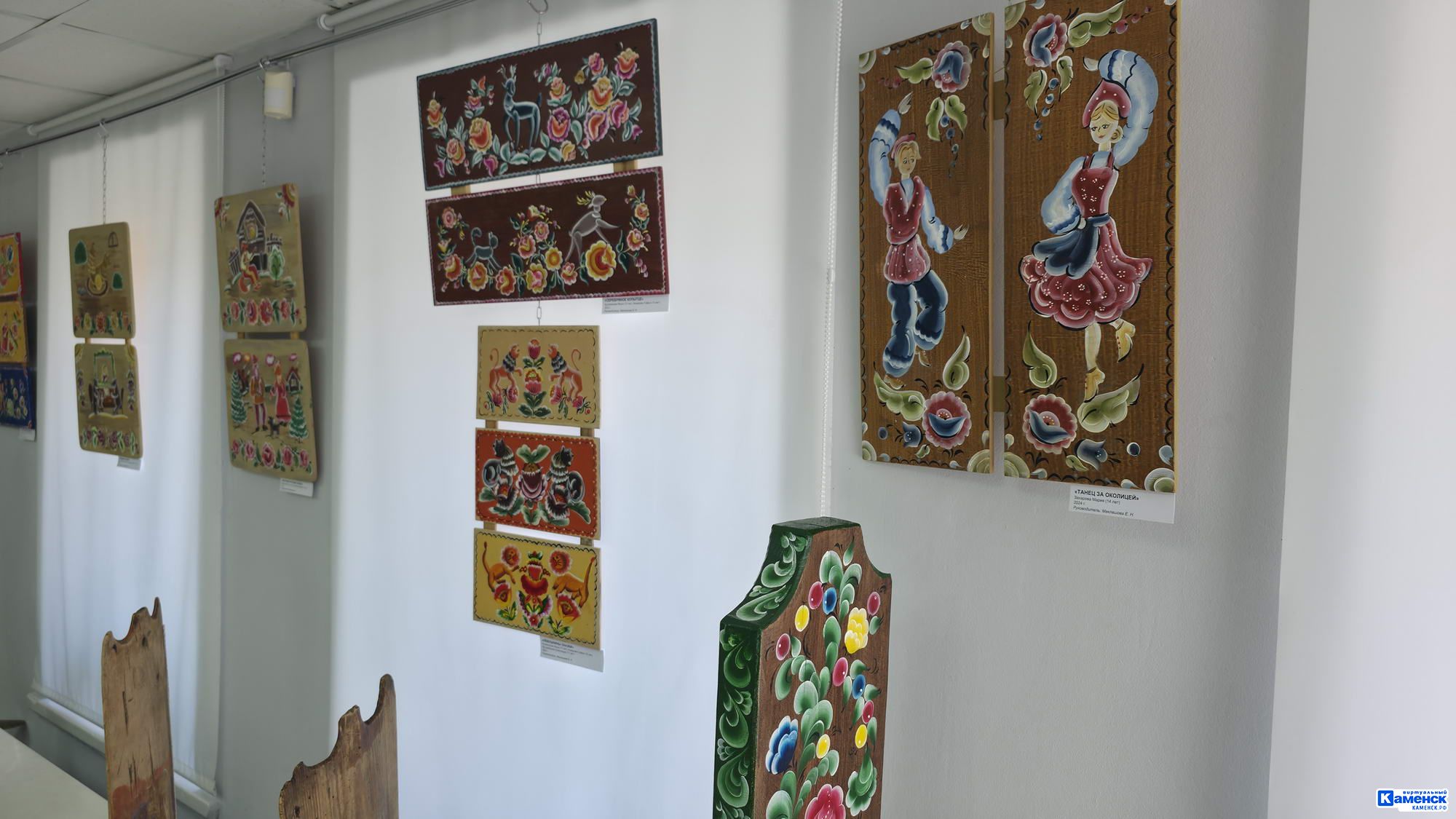 На экспонатах гости музея смогли разглядеть теплую осеннюю гамму, оттенки железной руды и алюминия — своеобразную отсылку к истории Каменска-Уральского. Был представлен главный цветок каменской росписи — колокольчик, ведь наш город носит гордое звание колокольной столицы Урала. А еще юные художники в своих произведениях смогли уникальным образом соединить старинные мотивы и современность: на картинах изображены городские достопримечательности в стиле уральской живописи. Особо тронула сердца посетителей коллекция подлинных старинных расписных прялок 19-го, начала 20-го века из фондов Каменского краеведческого музея.