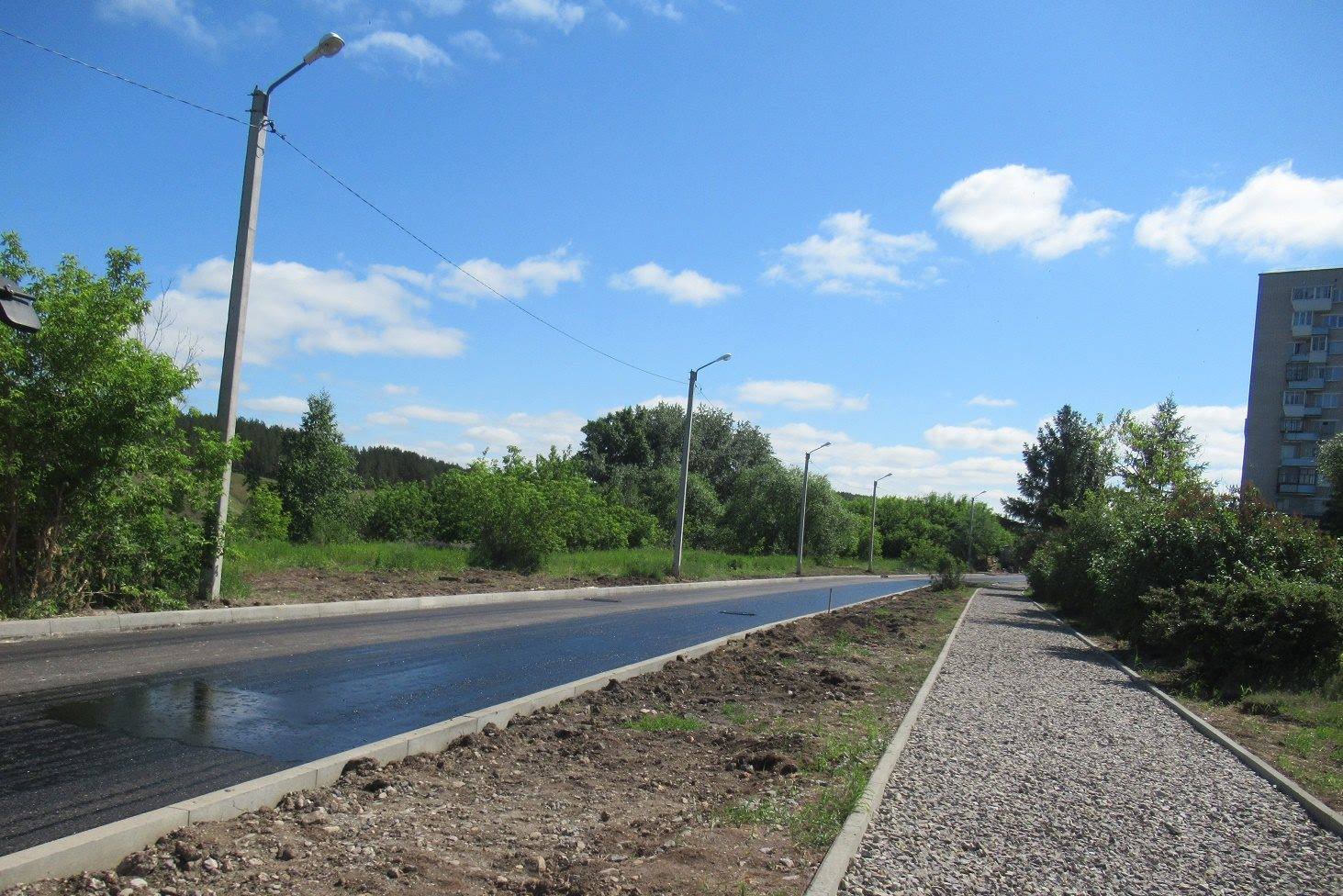 А пока дорожники укладывают укрепляющий слой асфальтобетона на самой широкой улице Красногорки - Каменской.