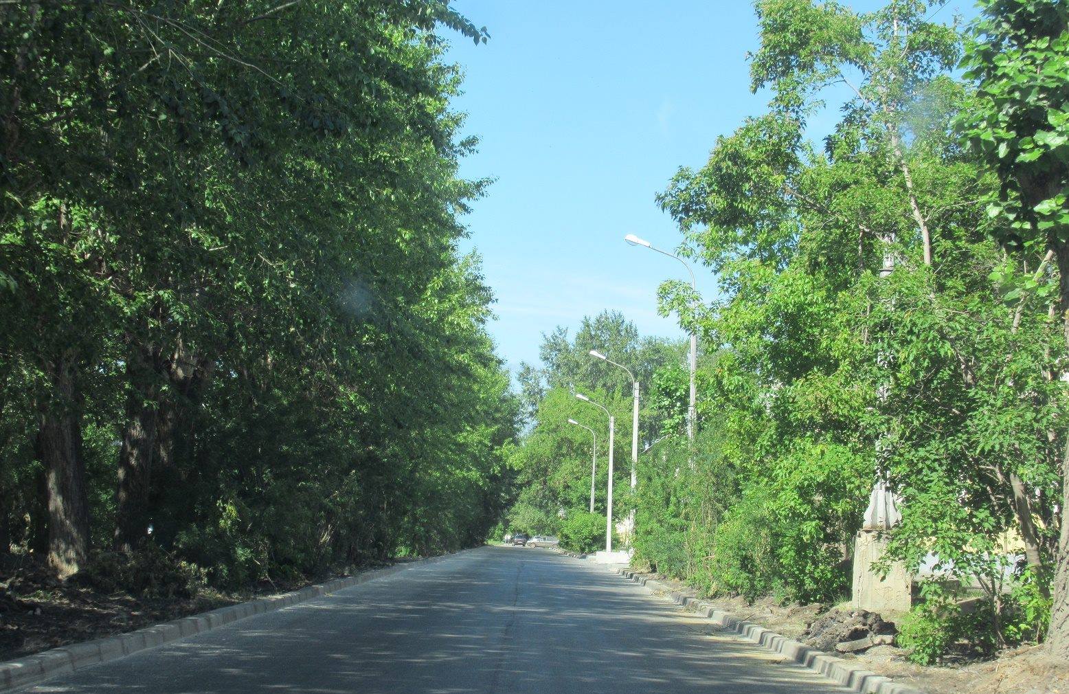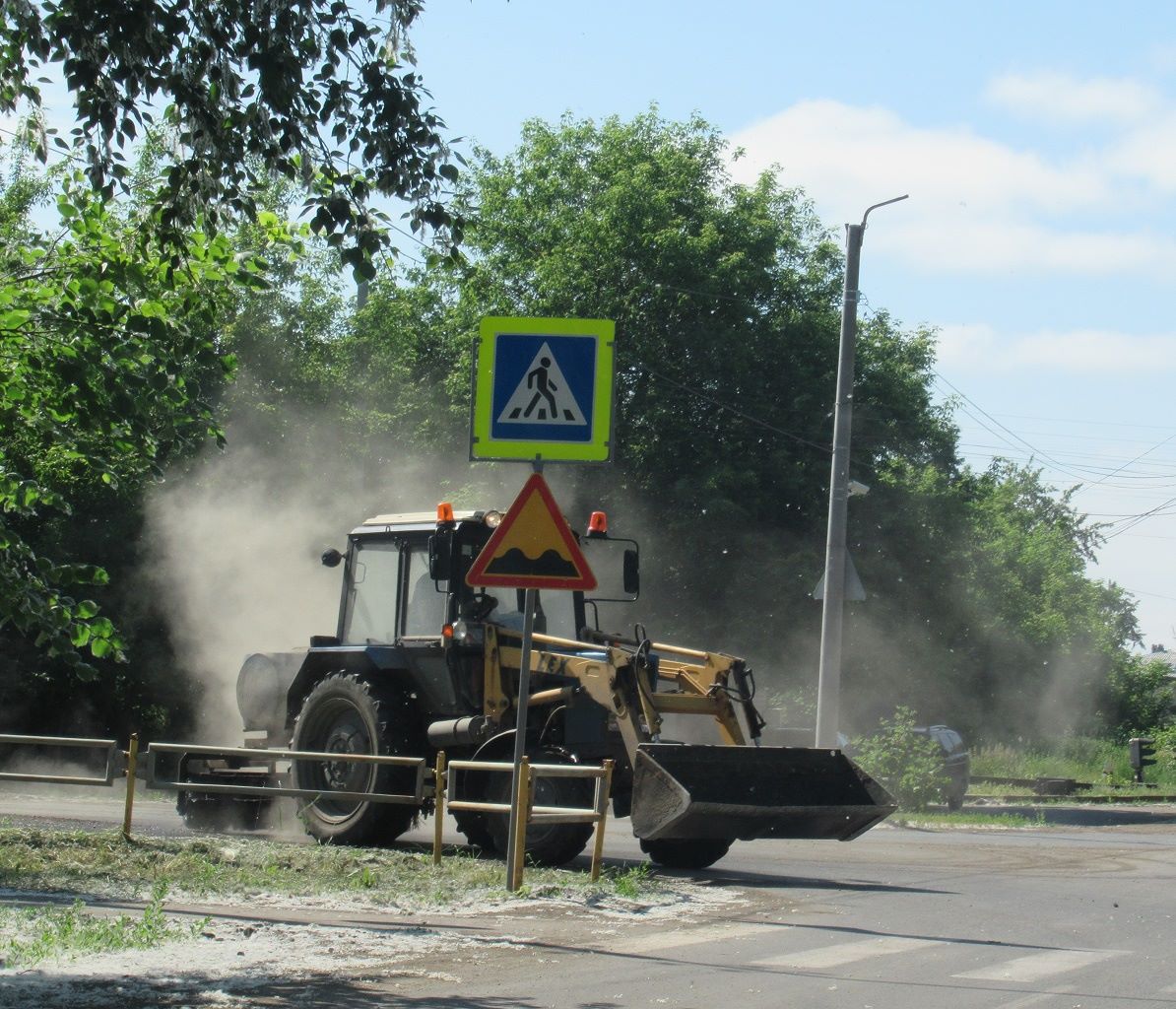 Поливомоечная машина смывает тополиный пух и пыль. Это ГУДСР готовит основание проезжей части улиц Слесарей и Центральной к укладке асфальта. Еще пара рабочих смен, и укладчик с катками начнут лечить дорожное полотно здесь, на Чкаловском.