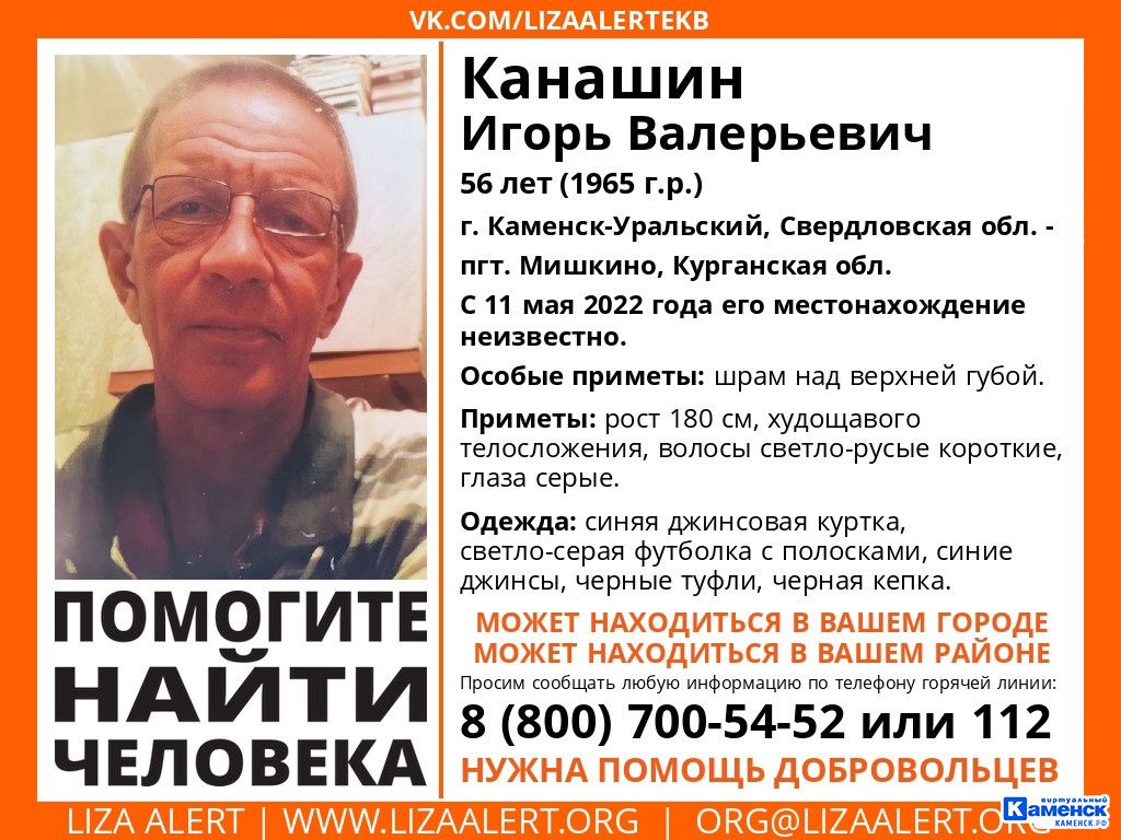Волонтеры поискового отряда «ЛизаАлерт» разыскивают пропавшего 56-летнего Канашина Игоря Валерьевича. Мужчина отправился 11 мая в поселок Мишкино Курганской области. С того момента он перестал выходить на связь.