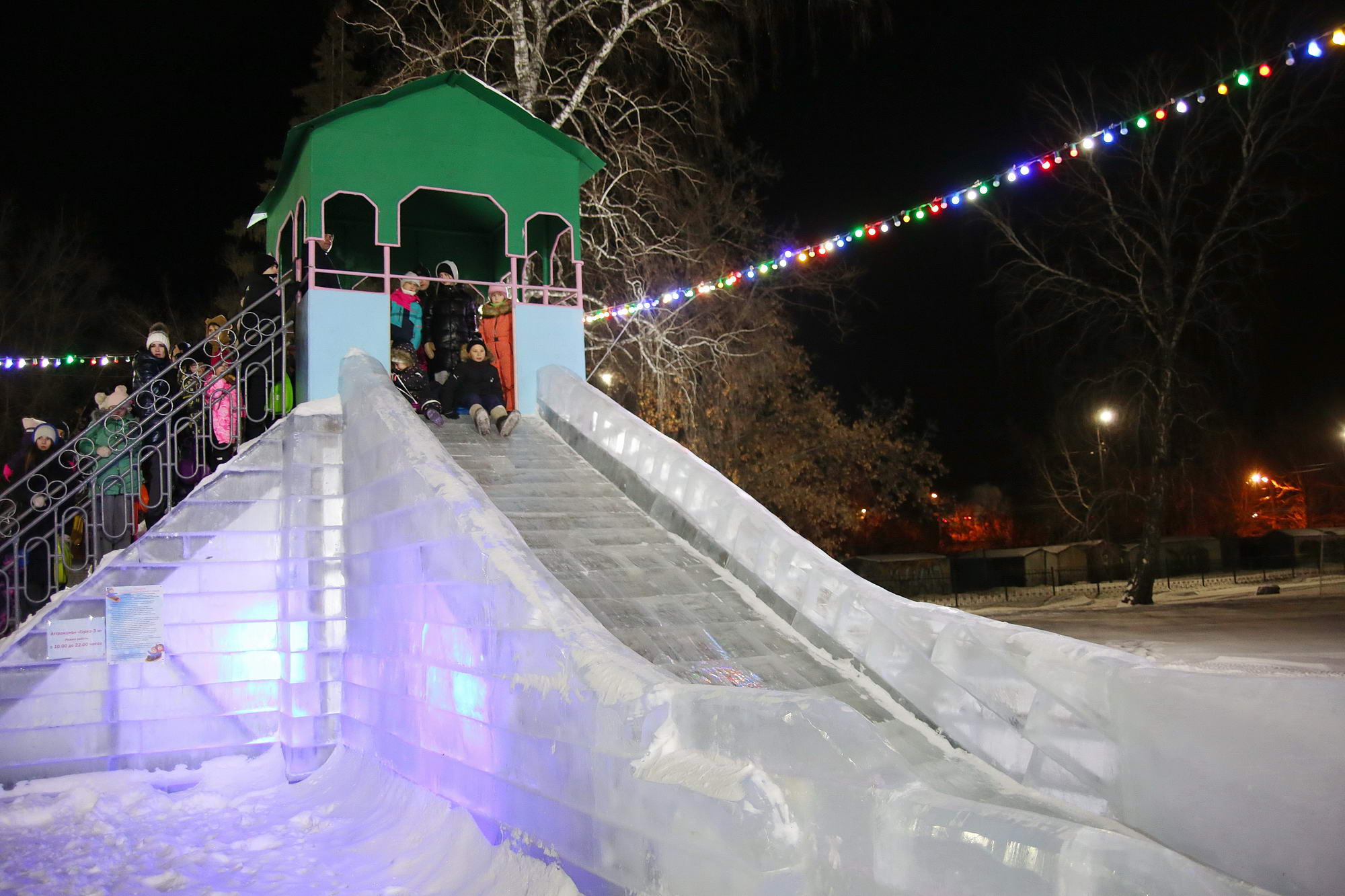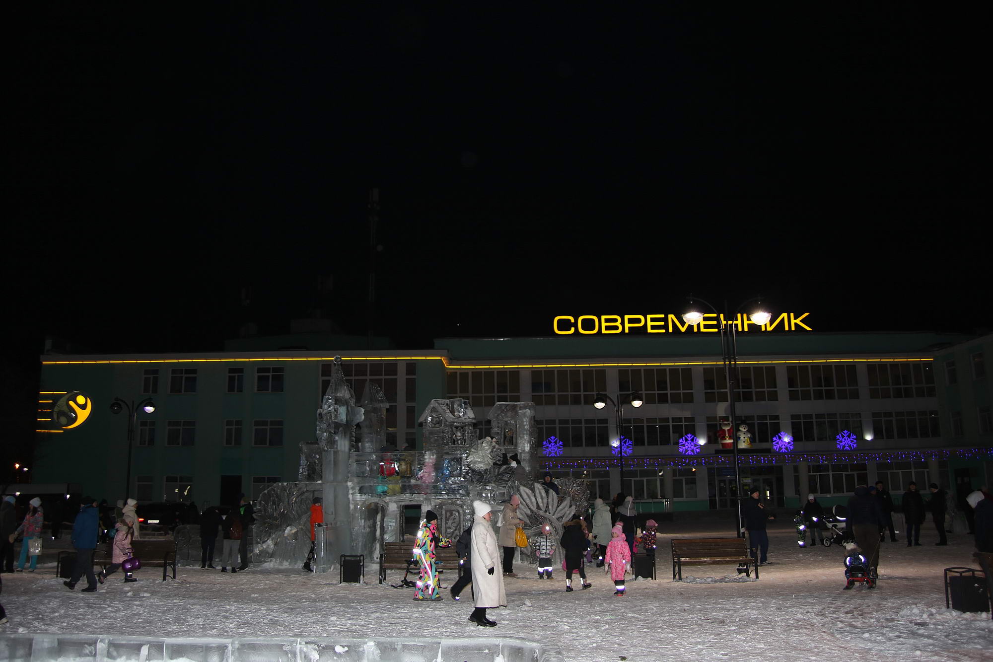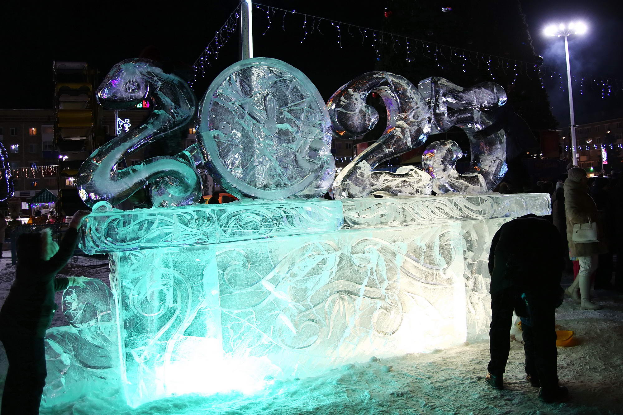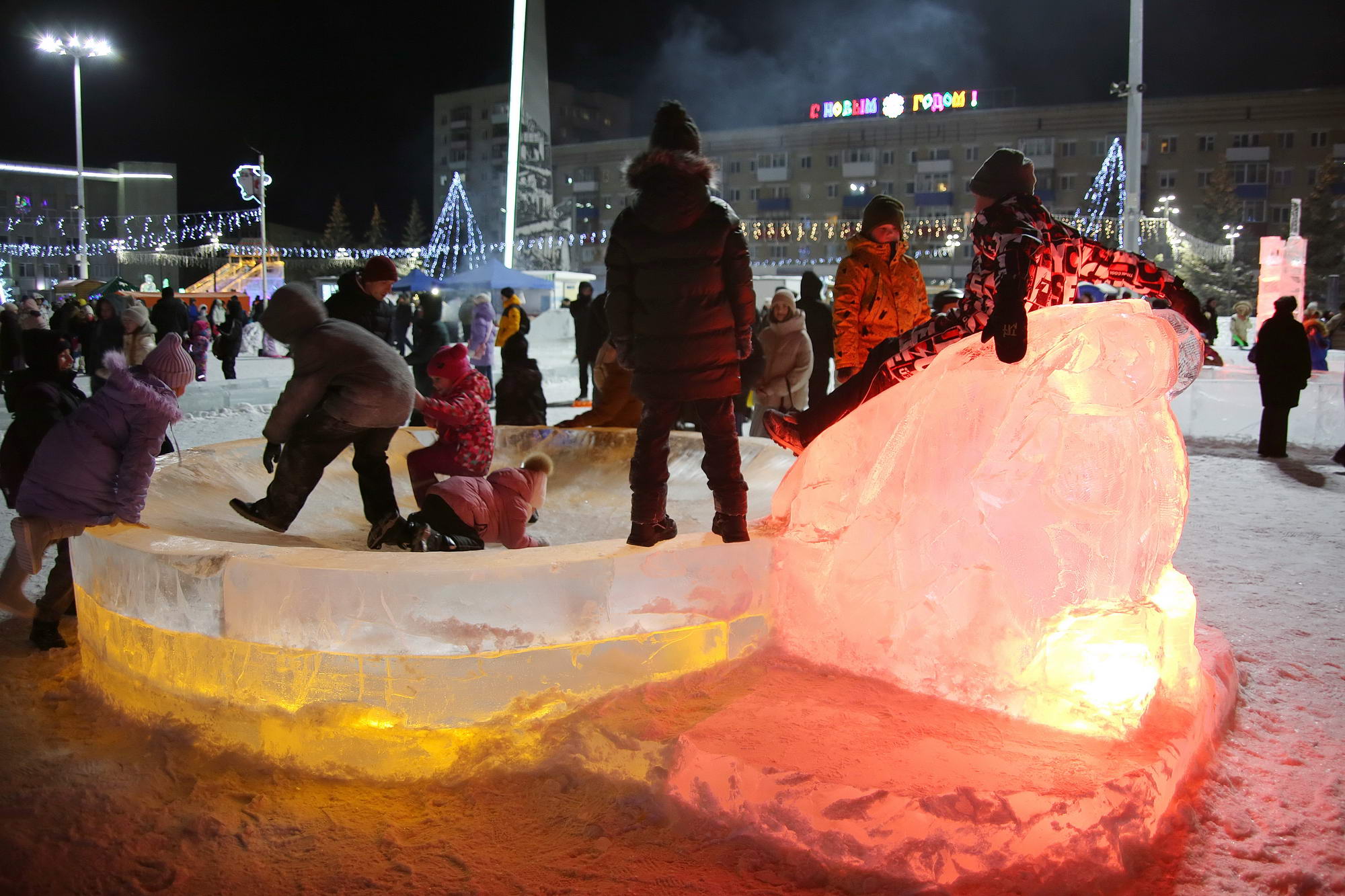 Огни на главной елке города на центральной площади тоже зажглись 28 декабря. Здесь в этом году мастера создали три большие и несколько маленьких горок, лабиринт и много скульптур. Установлены и аттракционы. Центральный городок будет работать по 20 января.