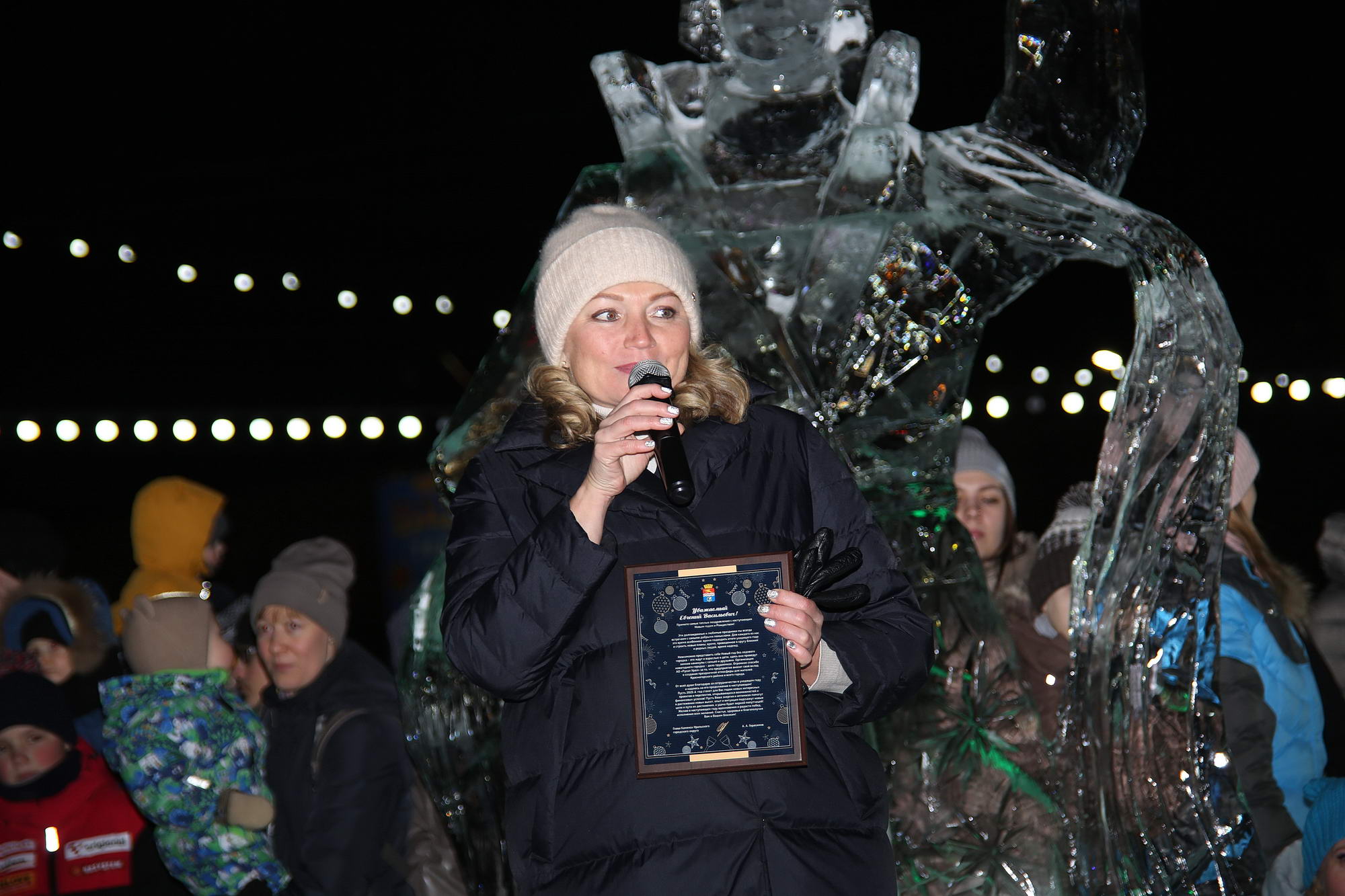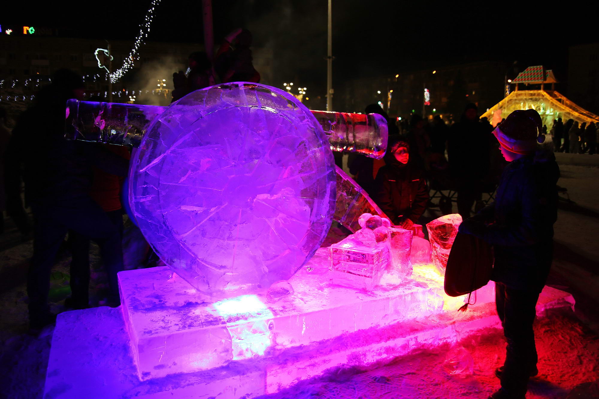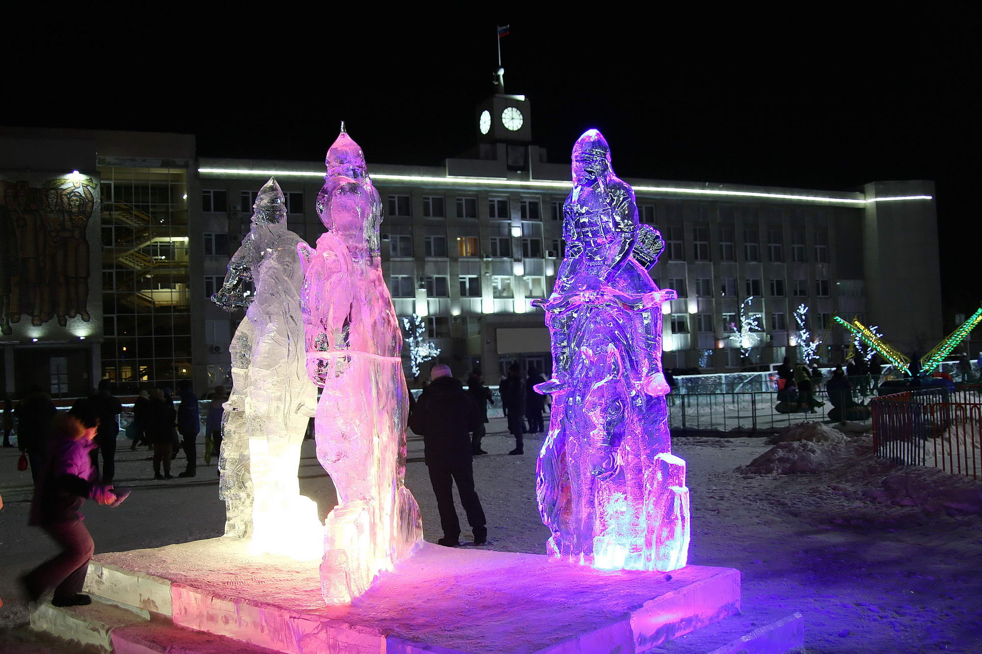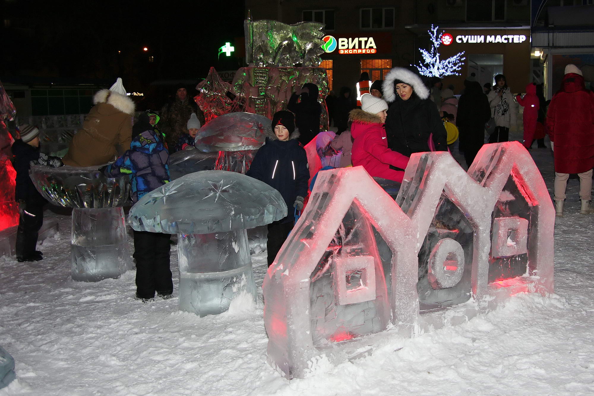 Огни на главной елке города на центральной площади тоже зажглись 28 декабря. Здесь в этом году мастера создали три большие и несколько маленьких горок, лабиринт и много скульптур. Установлены и аттракционы. Центральный городок будет работать по 20 января.