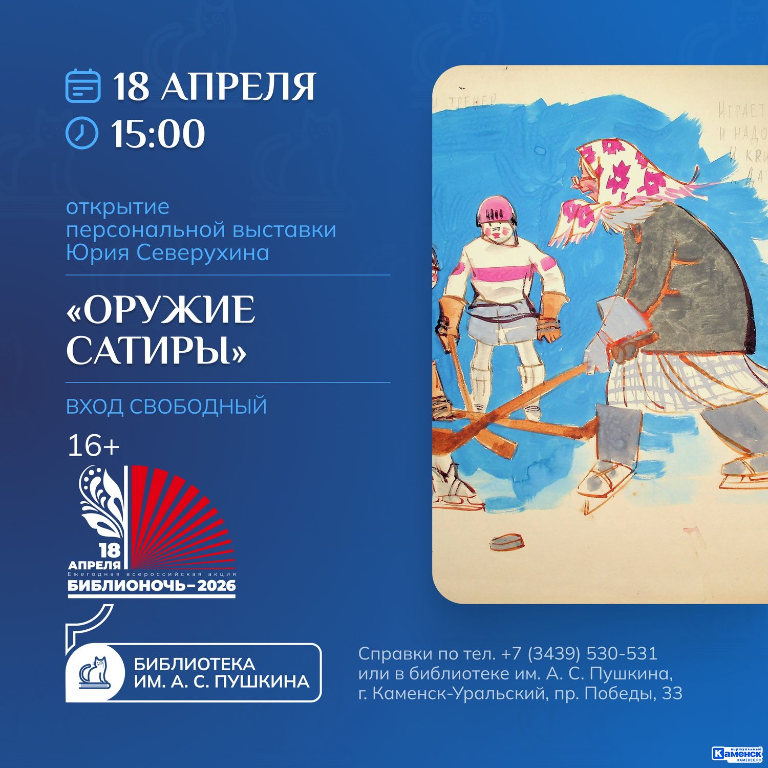 15−00 — открытие персональной выставки Юрия Северухина «Оружие сатиры» 16+