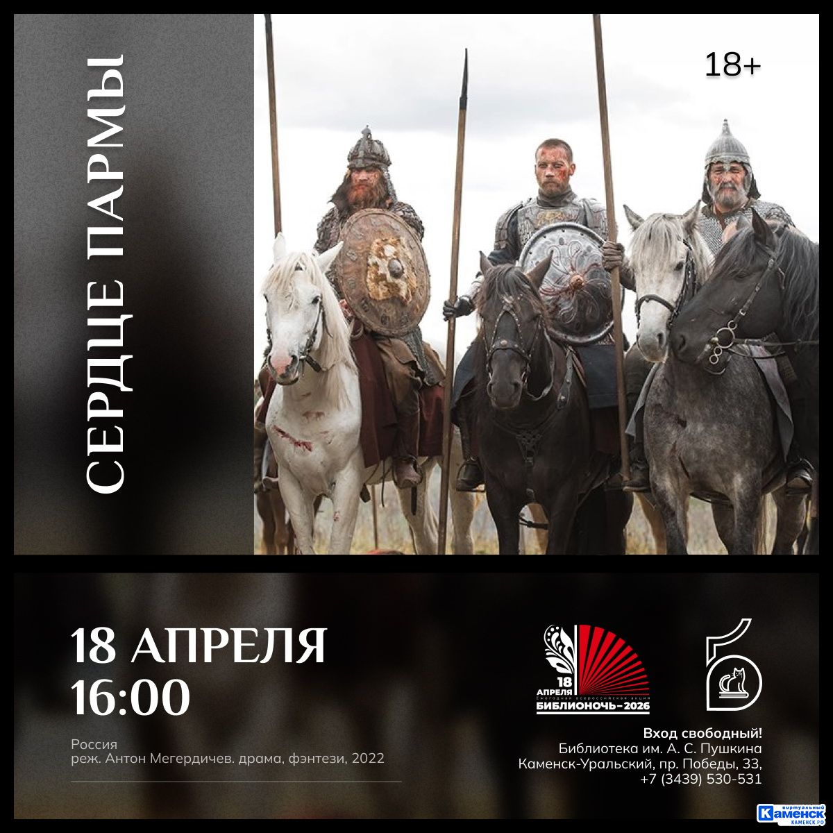 В 16 часов в Арт-гостиной начнется открытый показ исторической драмы с элементами фэнтези «Сердце пармы» российского режиссёра Антона Мегердичева — экранизации одноимённого романа Алексея Иванова.