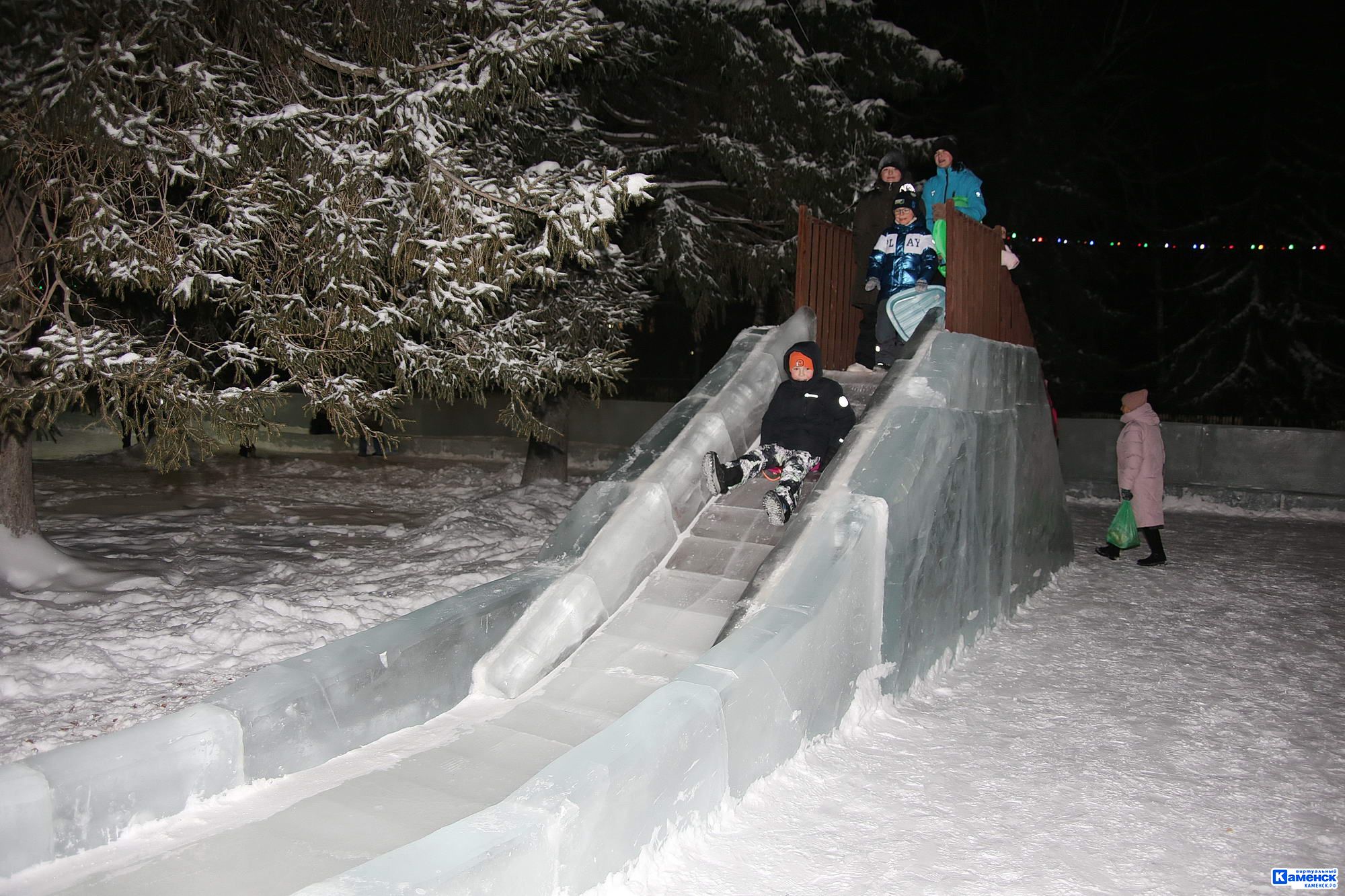 Ледяное царство на площади Ленинского комсомола в новогодние каникулы в этом году, без сомнения, станет точкой притяжения каменцев и гостей города. Входная группа оформлена в виде Каменных ворот. Детвору и их родителей порадуют шесть горок для детей разного возраста, лабиринт с шахматами, ловушка-луноход и аттракционы. Впервые появились две новые фотозоны: хорошие снимки на память можно сделать в санях, запряженных оленем, и рядом с Дедом Морозом и Снегурочкой. Темой для городка стали любимые персонажи советских открыток 60−70-х годов.